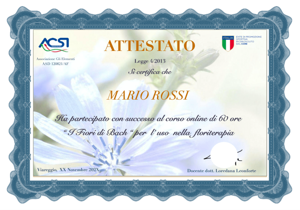 L’attestato di 60 0re totali segue la legge 4/2013 che regolamenta l’esercizio della professione di Floriterapeuta.